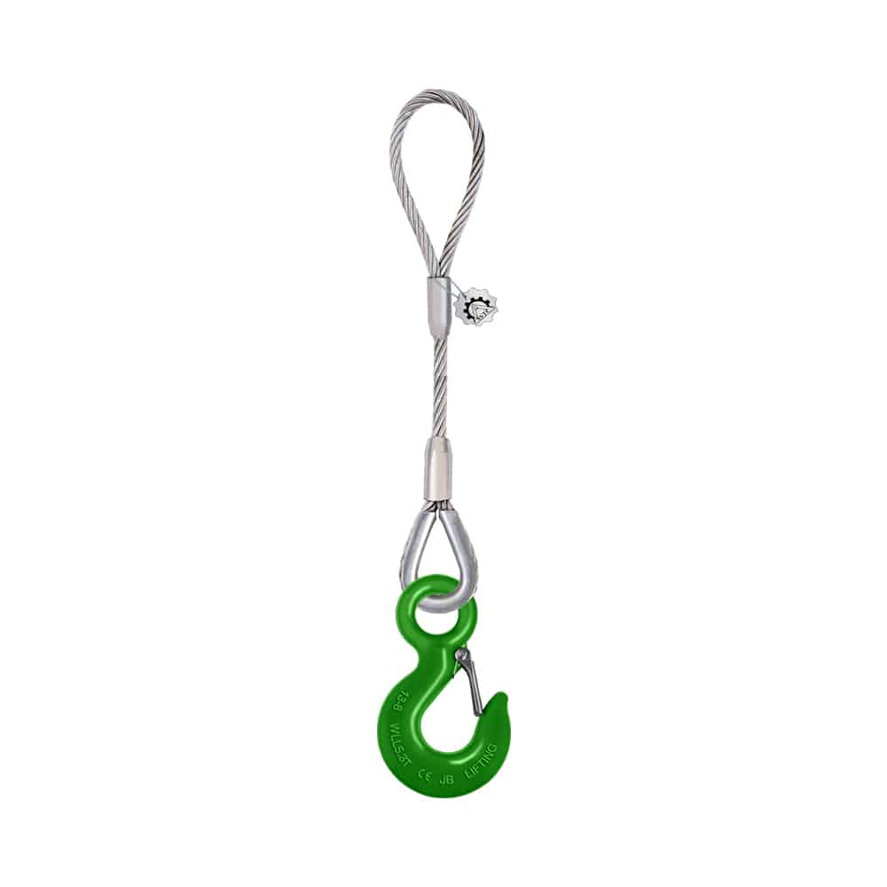 STEEL WIRE ROPE SLING: ONE SIDE SOFT EYE AND OTHER SIDE HARD THIMBLE EYE WITH EYE SLING HOOK