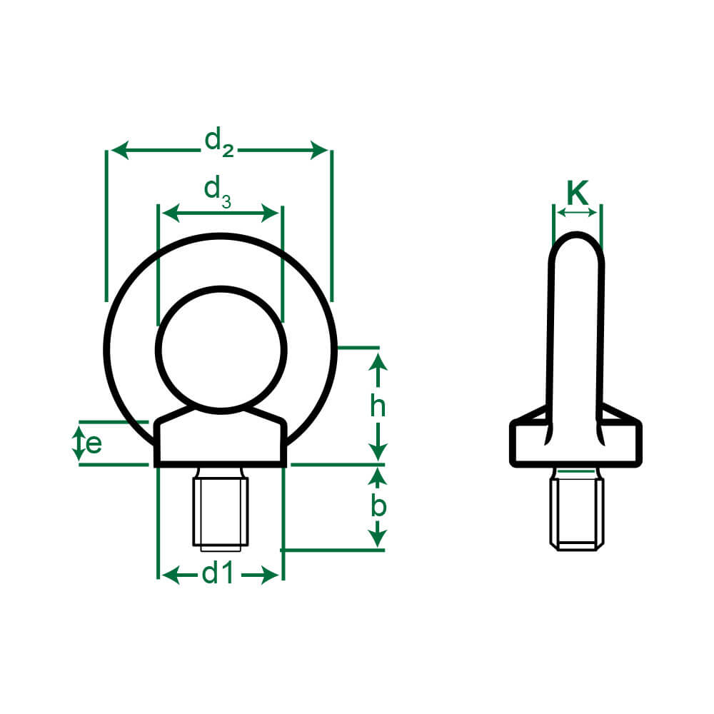 • Design: Threaded shank with a loop for attaching lifting equipment.