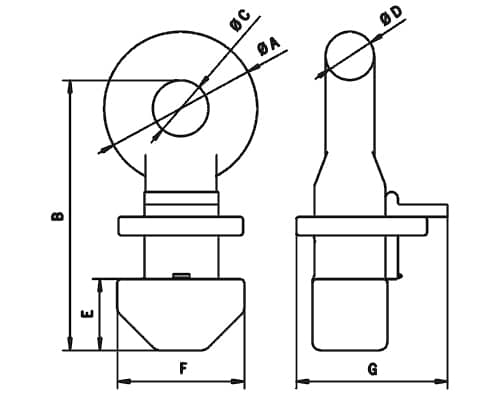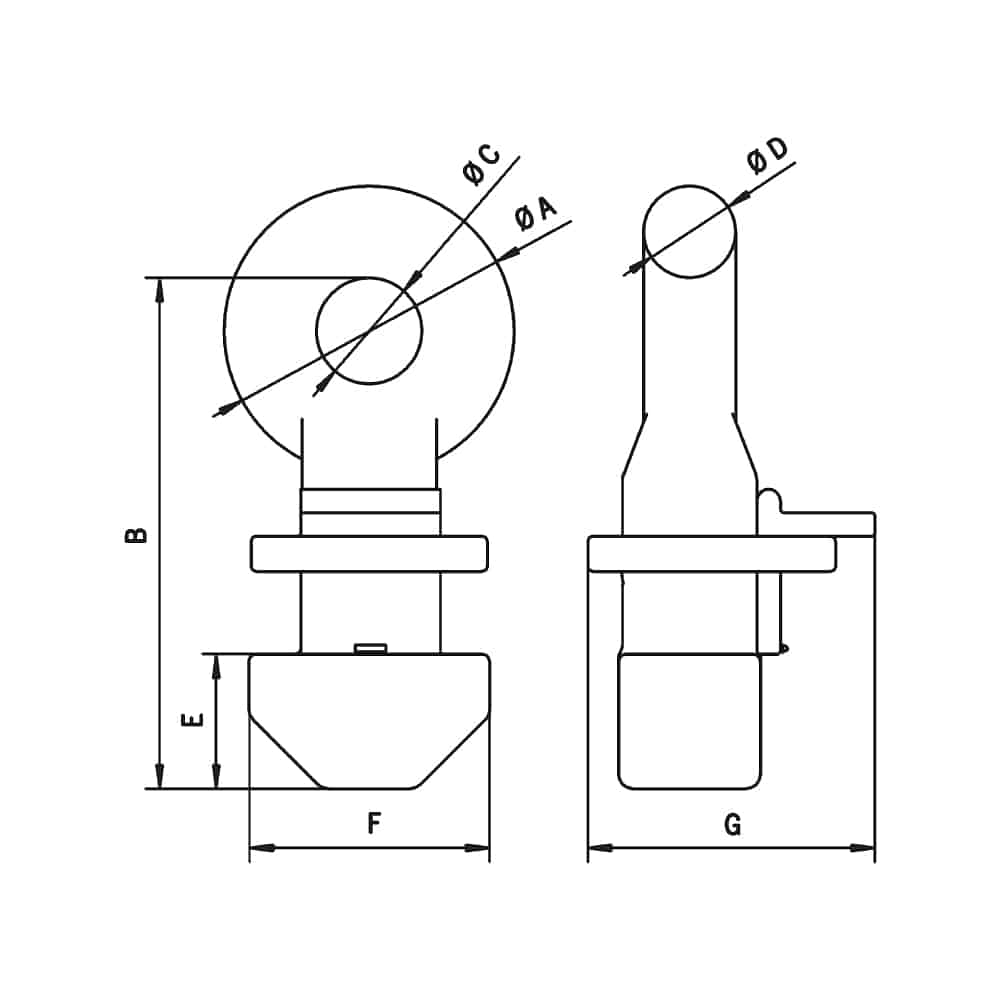 | Model | WLL | Type of lifting | Sling angle from vertical | A | B | C | D | E | F | G | Weight |