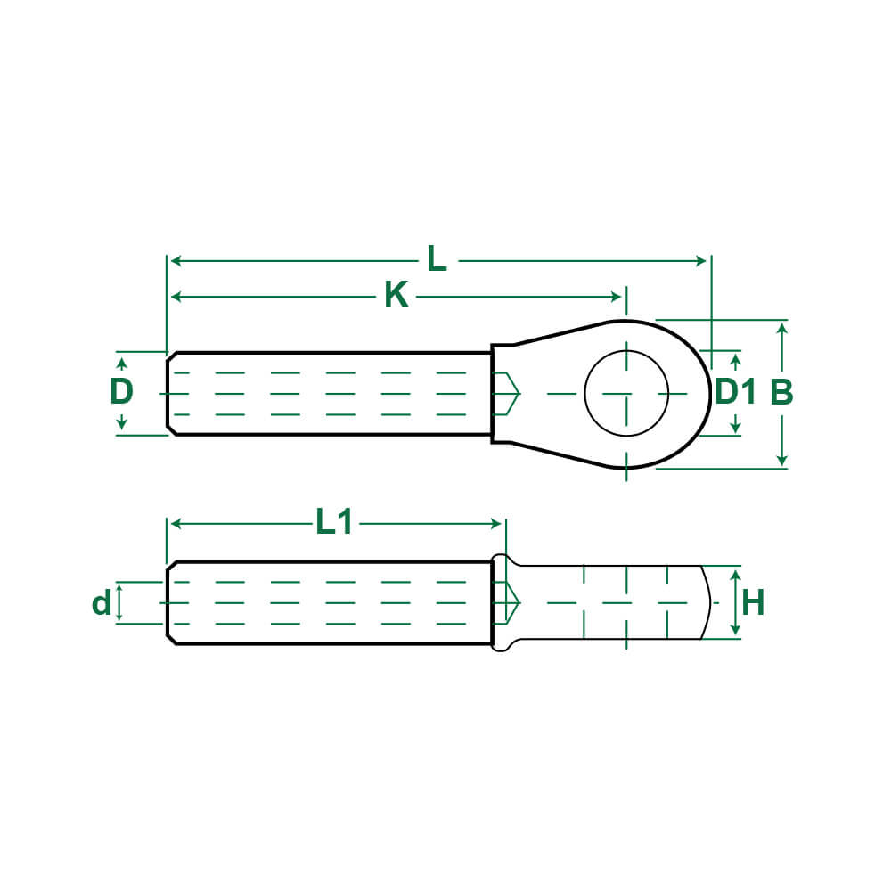 L | D | B | D1 | d | L1 | H | K | Max. O.D. after swage |