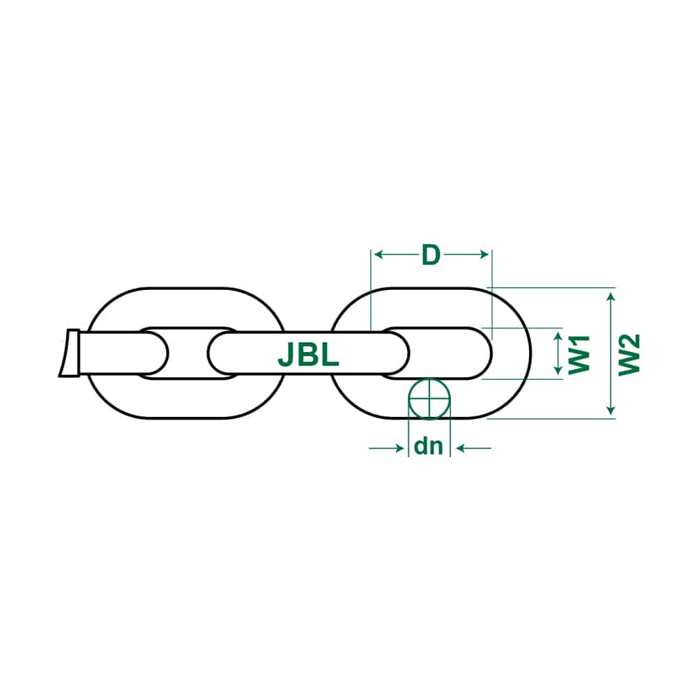 - Identification and Traceability: Each link of the chain is embossed with JB marking for easy identification and traceability, ensuring accountability and quality assurance throughout its lifespan.