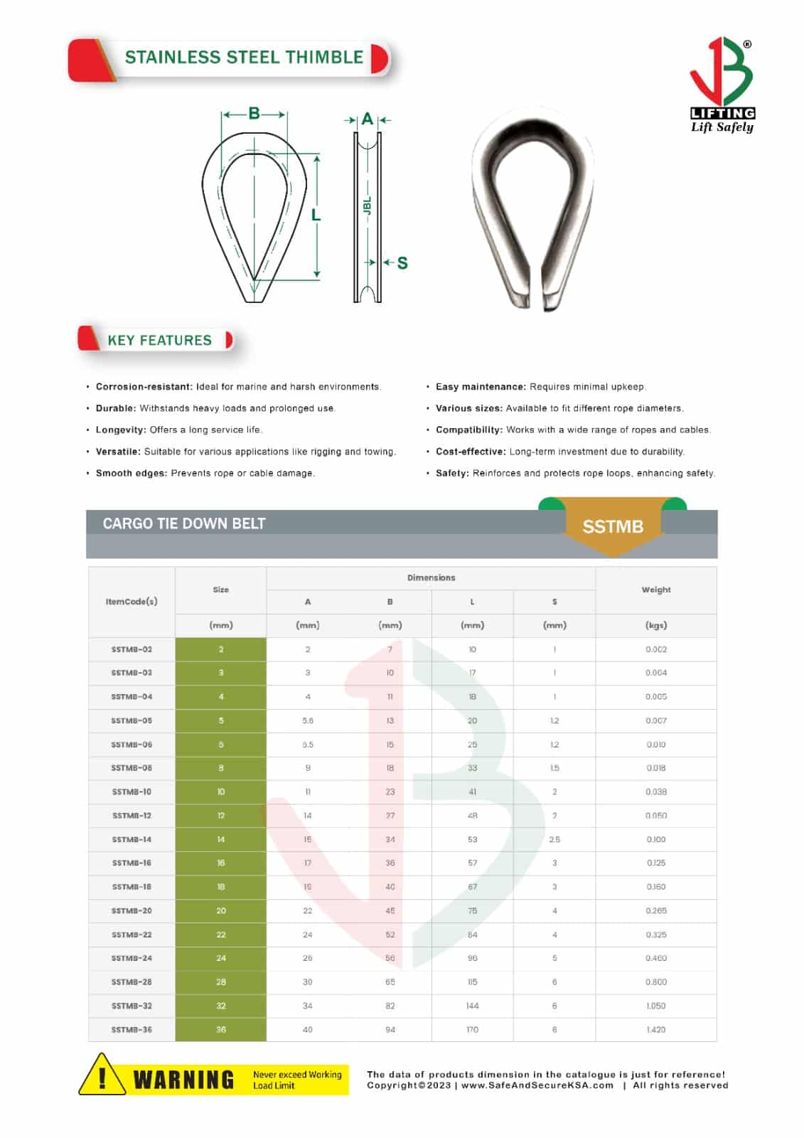 - Inspection Before Use: Always inspect the assembly before use. Check for proper installation of the thimble, ensure there is no damage to the rope or sling, and confirm that all connections are secure.
